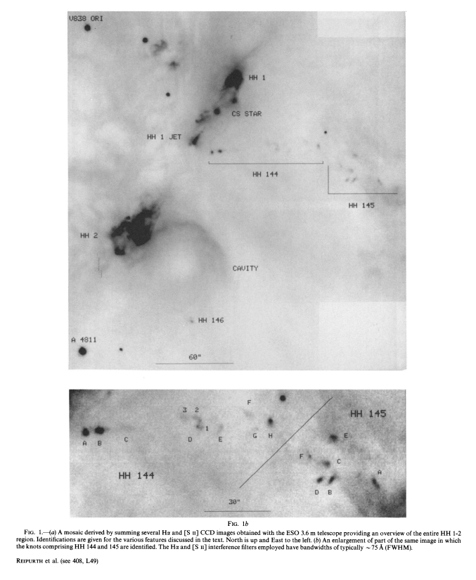 Pravdo, S. H. et al., “Detection of radio continuum emission from Herbig-Haro objects 1 and 2 and from their central exciting source.”, The Astrophysical Journal, vol. 293, pp. L35–L38, 1985. doi:10.1086/184486.