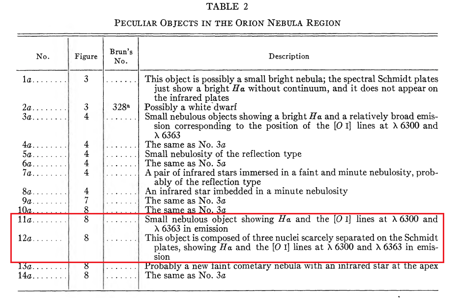 Haro, G., “Hα Emission Stars and Peculiar Objects in the Orion Nebula.”, The Astrophysical Journal, vol. 117, p. 73, 1953. doi:10.1086/145669.
