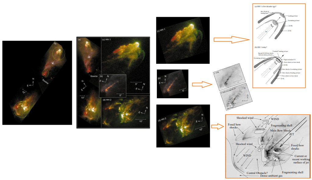 Estudios posteriores aportarían más información de la presencia de otras fuentes responsables de los chorros que producen los objetos HH y su impacto en las nube molecular que los rodea (Moro-Martín et al., 1999) (Cernicharo et al., 2000)