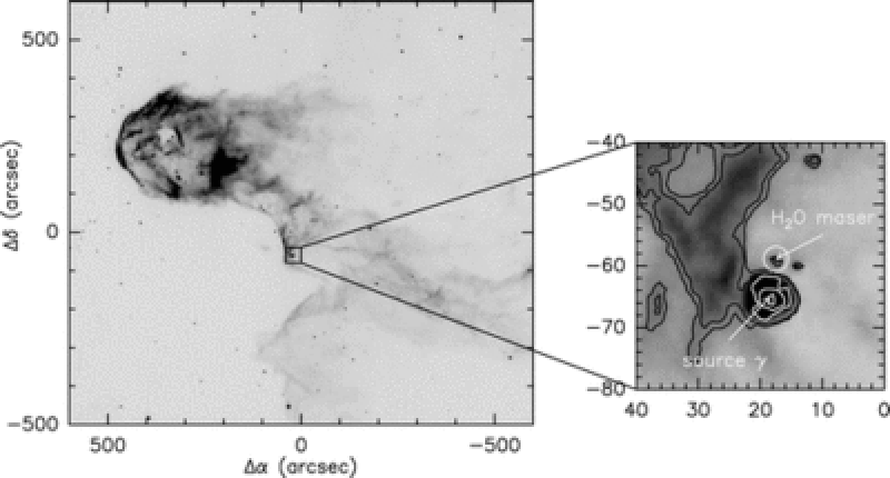 Se ha podido comprobar que, en los inicios de formación de una estrella, se producen transitoriamente haces de luz muy intensos despedidos a gran velocidad que son equiparables, en funcionamiento, a los rayos láser. Dependiendo del material que arrojan reciben denominaciones distintas. En el caso del estudio que comentamos, se trata de máser de agua y se captan en una longitud de onda de 22.2 GHz.