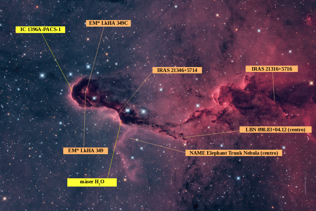 Es fácil deducir, a esta formación se la conoce como nebulosa Trompa de elefante