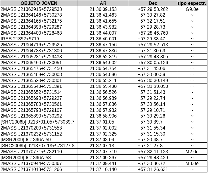Las fuentes recogidas allí son objetos muy jóvenes, en secuencia pre-principal y, por tanto, idóneos para el estudio de formación estelar. Si en otras ocasiones hemos visto que las investigaciones se orientan a la formación por ‘expansión’ (y explosión) de estrellas masivas, con estos objetos lo que se averigua es la posible formación de estrellas de baja masa producida por compresión entre frentes de choque ionizados (Larosa, 1983).
