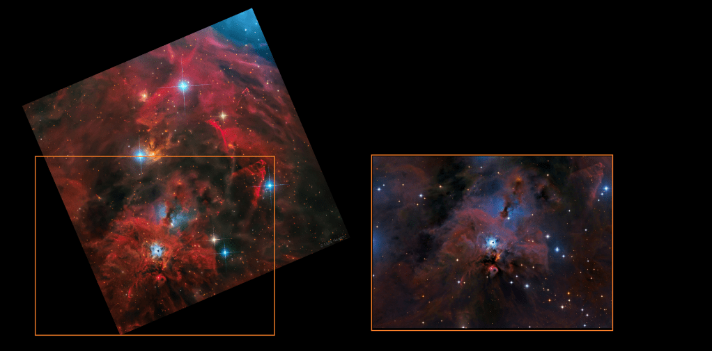 Otra divagación: tampoco es que haya mucha diferencia entre las distancias (40 pc no parece que aquí, a esta escala cósmica, vayan a ninguna parte) ¿estamos asistiendo al nacimiento de un cúmulo?¿podrían ser dos?¿se podría decir que es un cúmulo incrustado o falta confirmación con infrarrojos que profundicen más?¿desentrañar estas cosas es lo que puede hacer el JWST?