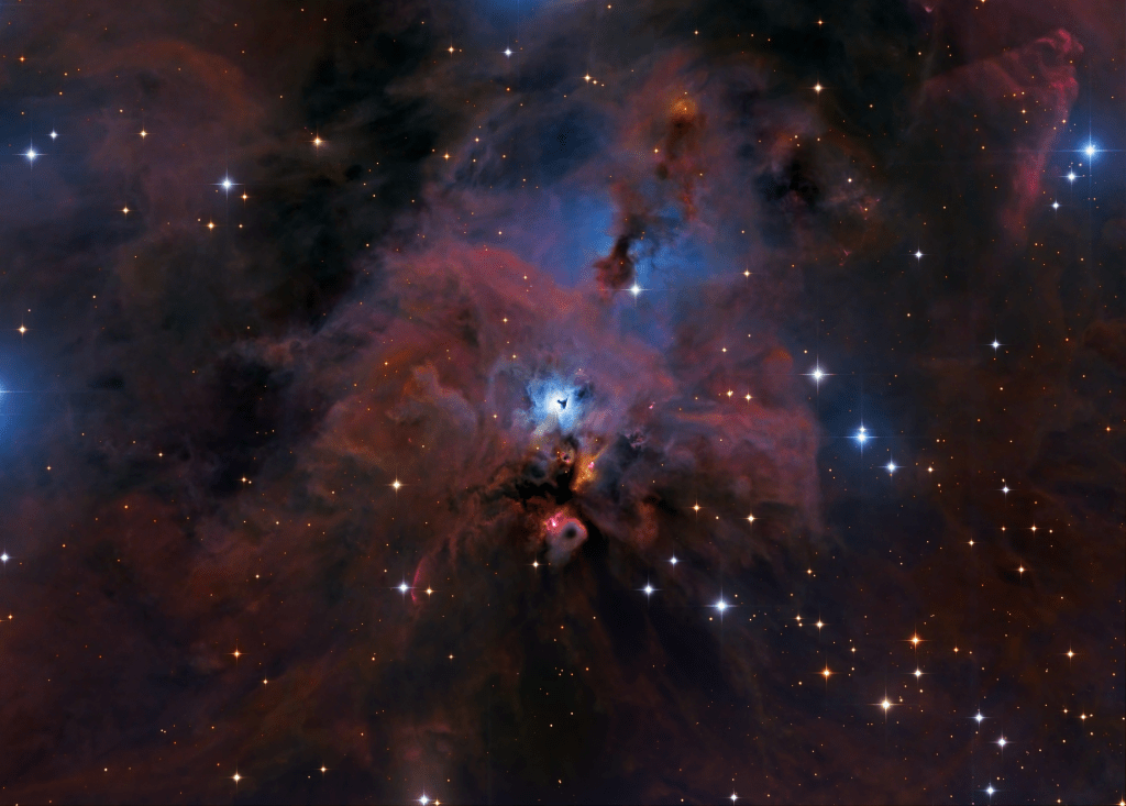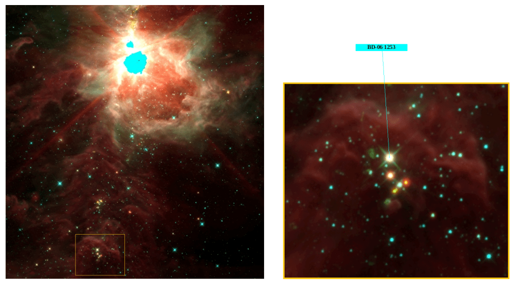 Las astrofotografías comentadas en las dos entradas anteriores mostraban dos características relevantes de la región. Por un lado, la hiperactividad en formación de estrellas que se manifiesta por el gran número de objetos jóvenes, con numerosos Herbig-Haro y, por otro, la poderosa influencia del sistema múltiple BD-06 1253.