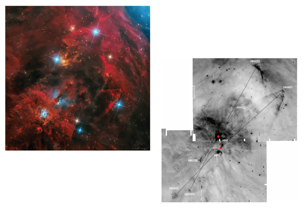 Lo curioso de HH 222 es que, con todas estas evidencias, está catalogado como ‘parte de nube’ y con el nombre oficial NAME Orion Streamers.