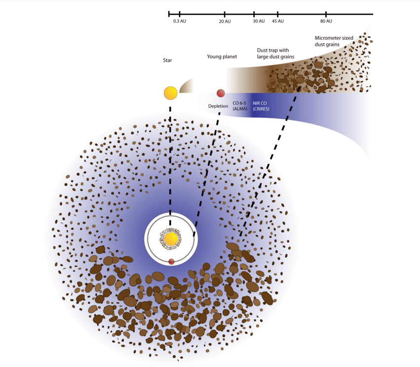 La protoestrella había sido observada desde 2013 en que se identificó una ‘trampa de polvo’ que contrarrestaría la caída de los granos más grandes hacia el centro permitiendo ese disco que, con el tiempo, podría albergar un planeta o una compañera, según se indica en el artículo que ya encabezaba Nienke van der Marel, una de las firmantes del más actual (van der Marel, 2013).