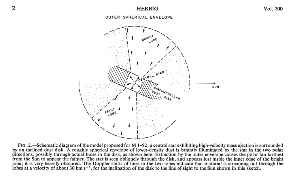 Herbig, G. H., “The spectrum and structure of «Minkowski’s footprint»: M1-92.”, The Astrophysical Journal, vol. 200, 1975. doi:10.1086/153754.