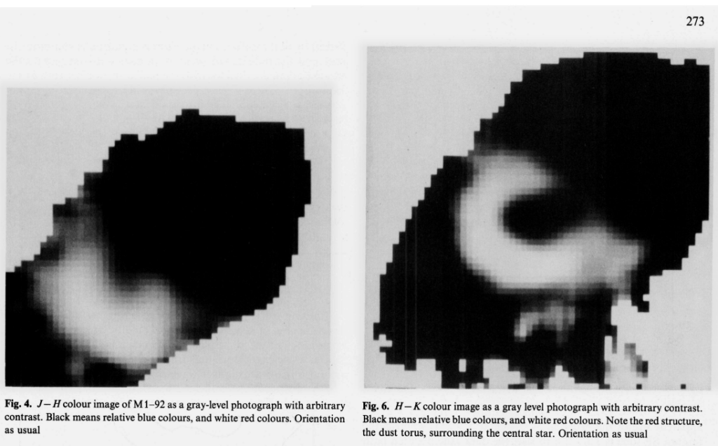 Eiroa, C. and Hodapp, K.-W., “Near-infrared morphology of protoplanetary nebulae : the icy dust torus of Minkowski’s Footprint (M1-92).”, Astronomy and Astrophysics, vol. 223, pp. 271–276, 1989.