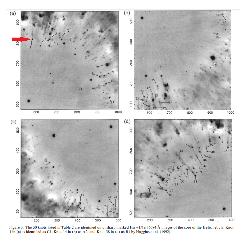 Matsuura, M. et al., “A «Firework» of H2 Knots in the Planetary Nebula NGC 7293 (The Helix Nebula)”, The Astrophysical Journal, vol. 700, no. 2, pp. 1067–1077, 2009. doi:10.1088/0004-637X/700/2/1067.