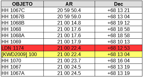 Y aún más, en un artículo posterior, la misma Saha amplía a otros dos grupos de la región que ya habíamos visto en la entrada anterior LDN 1147/1158, relacionada con V* PV Cep (recordar la nebulosa de Gyulbudaghian) y LDN 1177 (recordar la nebulosa del fantasma).