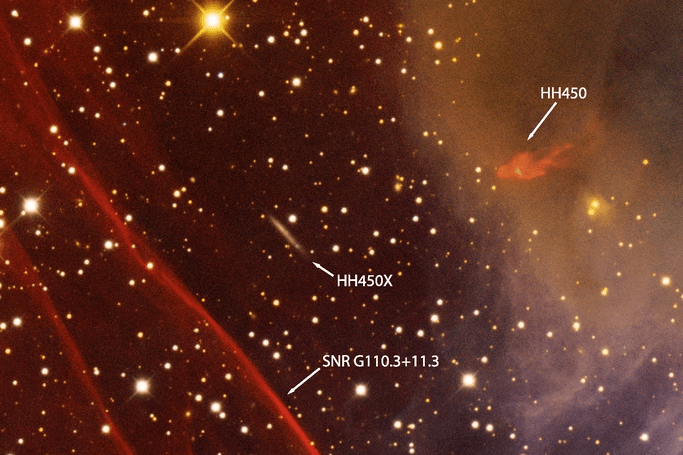 Y, por supuesto, hay que mencionar el remanente de supernova SNR G110.3+11.3 y de la interacción de éste con los objetos HH.