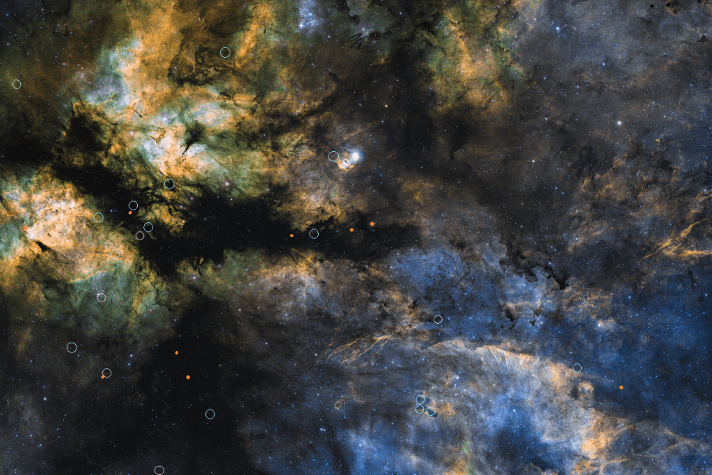 Nos habíamos quedado en los cúmulos y nada nos debe extrañar de este cisne, ‘también’ reúne asociaciones OB, y no pocas, hay reseñadas hasta nueve (no lo he comprobado pero debe ser una de las regiones que más agrupa, si no la que más).