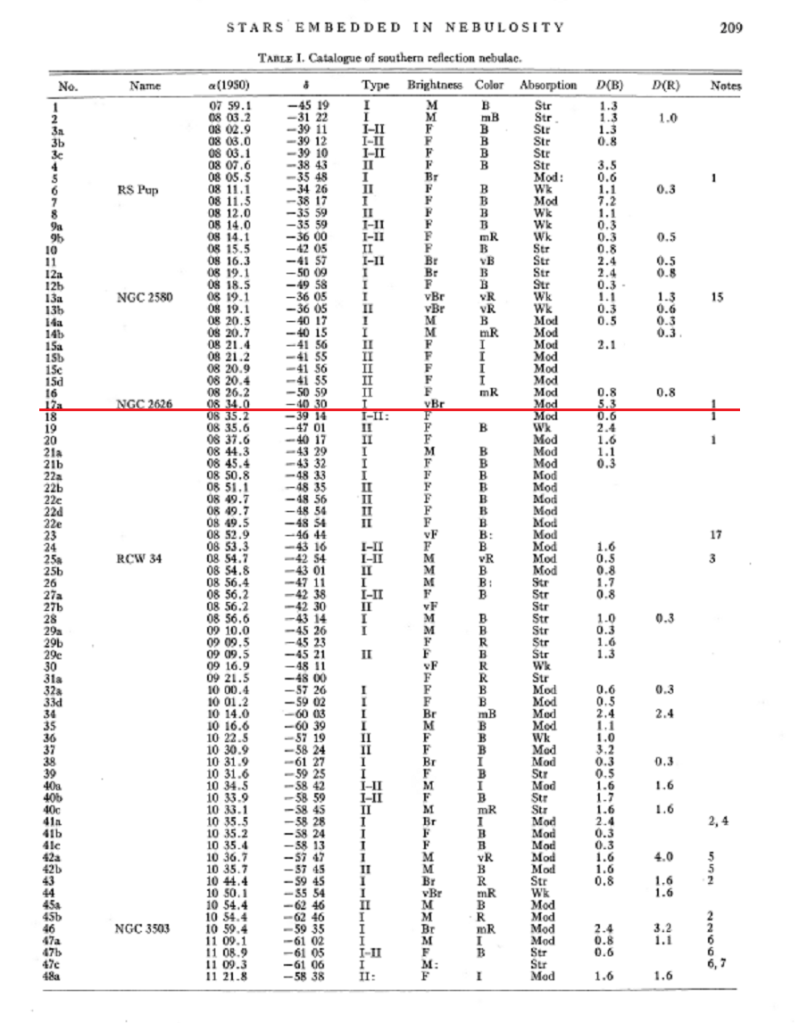 van den Bergh, S. and Herbst, W., “Catalogue of southern stars embedded in nebulosity.”, The Astronomical Journal, vol. 80, pp. 208–211, 1975. doi:10.1086/111733.