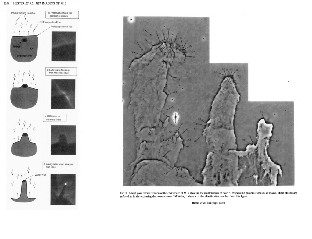 Hester, J. J. et al., “Hubble Space Telescope WFPC2 Imaging of M16: Photoevaporation and Emerging Young Stellar Objects”, The Astronomical Journal, vol. 111, p. 2349, 1996. doi:10.1086/117968.