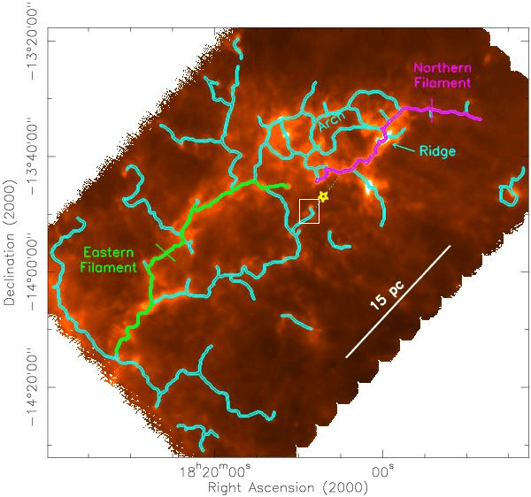 En la siguiente imagen están señalados los filamentos donde se formarían estrellas