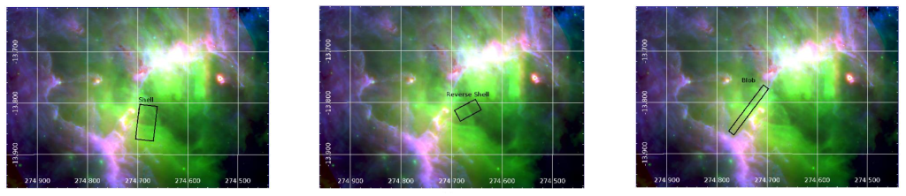 En su tesis se fijaba en la cavidad rodeada de polvo que se observa en la nebulosa que ya había llamado la atención del grupo de Pilbratt. Consideraba que podría tratarse del choque del polvo producido con la expansión de una remanente de supernova.
