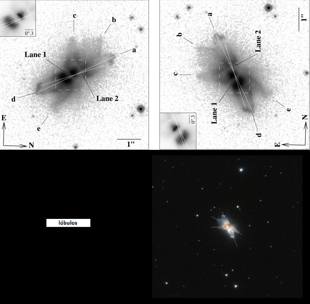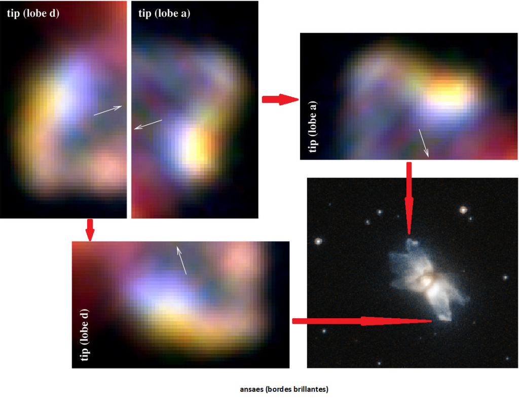 La presencia de esos rastros de chorros (lóbulos) no puede explicarse con certeza. ¿Se trata de un chorro bipolar que cambia de dirección o de eyecciones explosivas en diferentes direcciones?