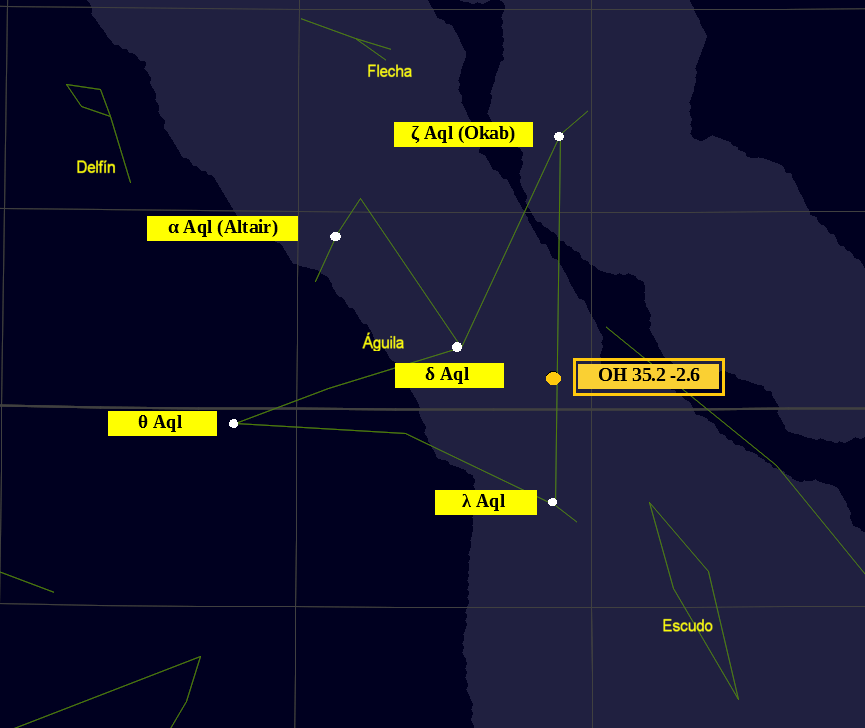 OH 35.2 -2.6 es su verdadero nombre. Tiene otros, desde luego, pero aún son más disuasorios. Por ejemplo, MSX6C G035.2084-02.6528.