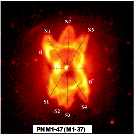 Sahai, R., “The Starfish Twins: Two Young Planetary Nebulae with Extreme Multipolar Morphology”, The Astrophysical Journal, vol. 537, no. 1, pp. L43–L47, 2000. doi:10.1086/312748.