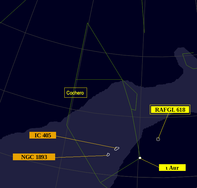 Ese es el nombre de la protagonista de esta entrada y estas son sus coordenadas, AR 04 42 53.624, Dec +36 06 53.397. Disponemos además de una distancia reconocida de poco más de 3500 pc (registrada en 2008).