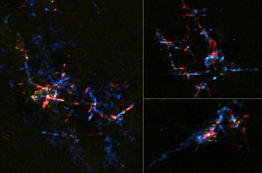 Aquí la imagen obtenida por ALMA donde se identifican chorros producidos por objetos jóvenes en el centro de nuestra galaxia (Lu, 2021)
