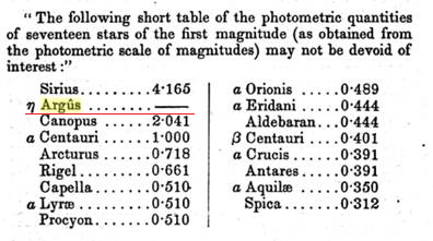 - Pág 27: η Argus, que era visible justo por encima del horizonte de Babilonia en la época en que se realizaron los registros y observaciones en cuestión (alrededor del año 700 a.C.), en un momento en que el polo sur del ecuador estaba situado cerca de la Pequeña Nube de Magallanes