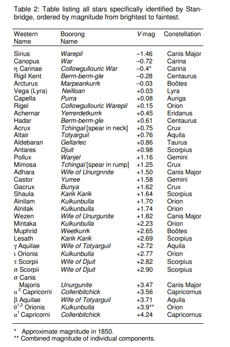 William Edward Stanbridge, llegado a Australia en 1841 procedente de Inglaterra, se interesó por las culturas aborígenes lo que le llevaría a publicar un trabajo sobre los conocimientos astronómicos de una de ellas, los Boorong.