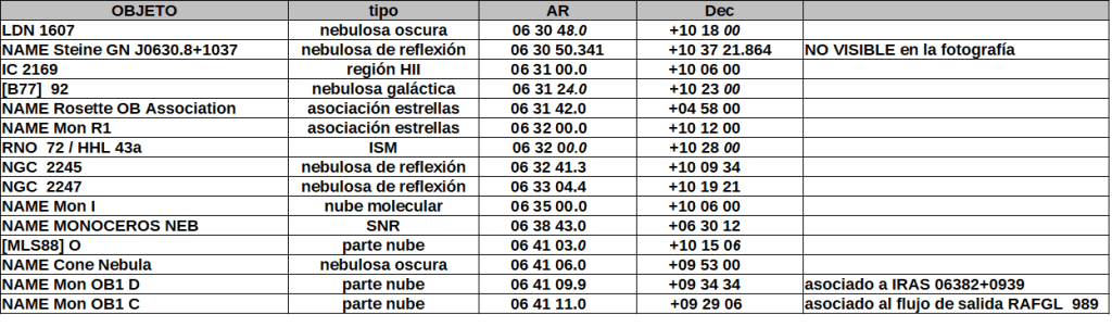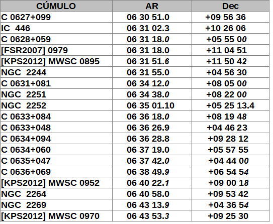 Demasiadas tablas de estrellas a estas alturas ¡hasta dos cúmulos NGC 2244 se pueden ver en la fotografía!… nadie es perfecto.
