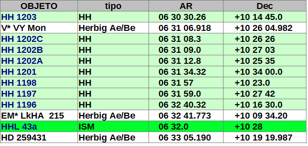 Como paisaje variado que es, también cuenta con una zona donde se han ido descubriendo incipientes objetos Herbig. Lamentablemente está tapada en la visual por otra densa nube de materia interestelar, HHL 43a.