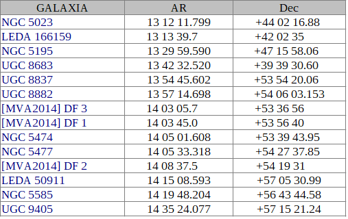 Lamentablemente no cabe aquí el extraordinario camino que le llevó a esa conclusión. No obstante, parece que Rubin tenía razón: nuestra galaxia fotografiada también forma un grupo, NAME M101 GROUP. Las siguientes son las compañeras