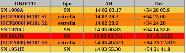 M 101 también ha sido objeto de seguimiento contribuyendo con la supernova Ia SN 2011fe, señalada en la imagen anterior en rojo.