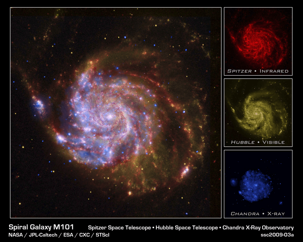 Conmemoración del año internacional de la Astronomía, 2009 [https://www.spitzer.caltech.edu/image/ssc2009-03a-nasas-great-observatories-celebrate-the-international-year-of-astronomy]