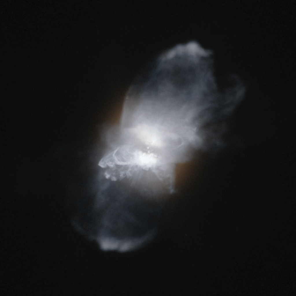 Hay que destacar, por ejemplo, el interés por interpretar las velocidades de los gases expandidos y que resultaban tan diferentes de otras proto-planetarias. También su disco de polvo central, más estrecho que otros (parece que se ve de perfil), hacían pensar en la posibilidad de que no se tratara de un disco kleperiano que posibilitara la acumulación de materia, sino que fuera un disco en ‘expansión’ (que la despidiera) (Dougados et al., 1992).
