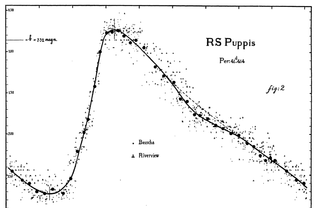 Nos habíamos quedado en esa primera referencia bibliográfica que incluia RS Puppis en la categoría de cefeida. Data de 1918 y estaba incluida en un estudio de varias cefeidas que había realizado Shapley.