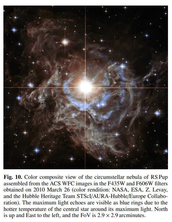 Kervella, P., “The long-period Galactic Cepheid RS Puppis. III. A geometric distance from HST polarimetric imaging of its light echoes”, Astronomy and Astrophysics, vol. 572, 2014. doi:10.1051/0004-6361/201424395.