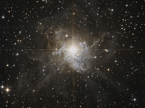 El hecho de que esté rodeada de una nebulosa, a pesar de lo que pueda parecer, facilita detectar las variaciones de luz experimentadas por la estrella a través de los ecos producidos en las nubes y esto, además, posibilita un método independiente de cálculo de distancias … hay que recordarlo, se busca la exactitud y, por tanto, fiabilidad y ya se sabe, cuantos más métodos distintos que se puedan comparar, mejor.