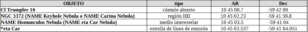 El caos estaba asegurado. Tantas referencias y tantos nombres de objetos para una misma zona que, al menos en los inicios, no se podían distinguir, es un poco desesperante y eso de lanzarme sin red lo he hecho en otras ocasiones, pero reconozco que la bibliografía de eta Car intimida, crece a cada intervalo de consulta, por corto que sea.